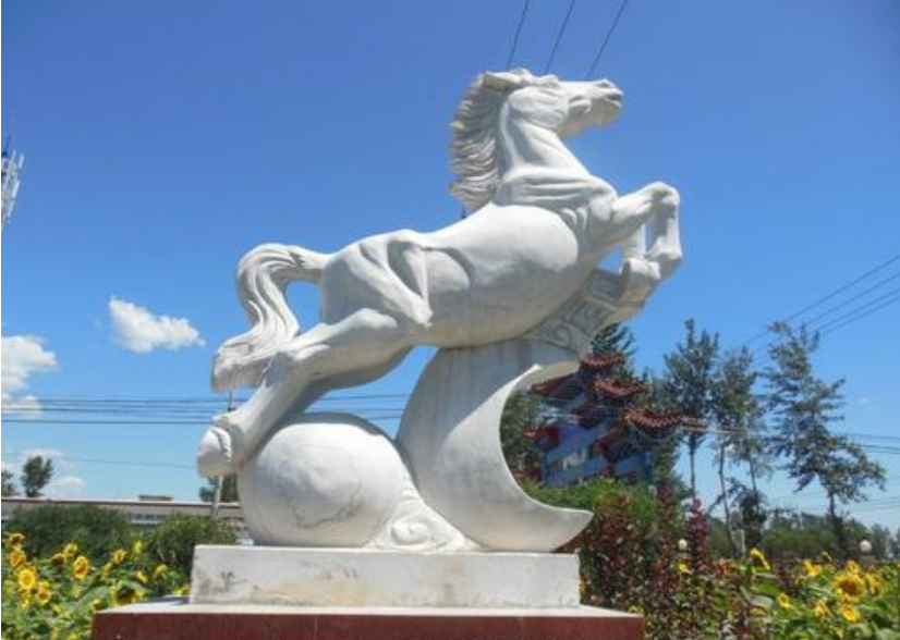 龍馬精神是中華民族自古以來(lái)所崇尚的奮斗不止、自強(qiáng)不息的進(jìn)取、向上的民族精神。祖先們認(rèn)為,龍馬就是仁馬,它是黃河,也是我們母親灑的精靈,是炎黃子孫的化身,代表了華夏民族的主體精神和最高道德。馬身高八尺五寸,長(zhǎng)長(zhǎng)的頸項(xiàng),顯得偉岸無(wú)比。骨骼生有翅翼,翼的邊緣有一圈彩色的鬃毛,引頸長(zhǎng)嘯,發(fā)出動(dòng)聽(tīng)的和諧的九音。這是多么神采駿逸的形象,多么瀟灑昂揚(yáng)的身姿。祖先們?cè)谑澜缬^里已經(jīng)把馬等同于純陽(yáng)的乾,它是剛健,明亮、熱烈、高昂、升騰、飽滿、昌盛、發(fā)達(dá)的代名詞。馬是在的象征,又代表著君王、父親、大人、祖考、金玉、敬畏、威嚴(yán)、健康、善良、遠(yuǎn)大、原始、生生不息。馬又是能力、圣賢、人才、有作為的象征。古人常常以"千里馬"來(lái)比擬。千里馬是日行千里的優(yōu)秀駿馬。相傳周穆王有八匹駿馬,常常駕著他巡游天下。八駿的名稱:一個(gè)叫絕地,足不踐土,腳不落地,可以騰空而飛;一個(gè)叫翻羽,可以跑得比飛鳥(niǎo)還快;一個(gè)叫奔菁,夜行萬(wàn)里;一個(gè)叫超影,可以追著太陽(yáng)飛奔;一個(gè)叫逾輝,馬毛的色彩燦爛無(wú)比,光芒四射;一個(gè)叫挾翼,身上長(zhǎng)有翅膀,象大鵬一樣展翅翱翔九萬(wàn)里。有的古書(shū)把"八駿"想象為八種毛色各異,美化美奐的稚匹美麗的馬群,分別有很好聽(tīng)的名字:赤驥、盜驪、白義、逾輪、山子、渠黃、驊騮、綠耳。其實(shí),馬雕塑的神奇?zhèn)髡f(shuō)都是在形容賢良的人才,切莫真的信為神話。周穆王的八駿其實(shí)比喻著他的人才集團(tuán),才華卓具,本領(lǐng)非凡,各自用特殊的能力在共同輔佐周天子的天下大業(yè)。